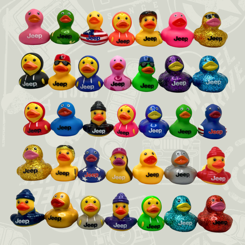 Whether you’re cruising the beach, hitting the trails, or parked at your favorite coffee shop, there’s no better way to share the Jeep spirit. Find your favorite official Jeep Branded Ducks at retailers nationwide — pick your duck and keep the tradition rolling!